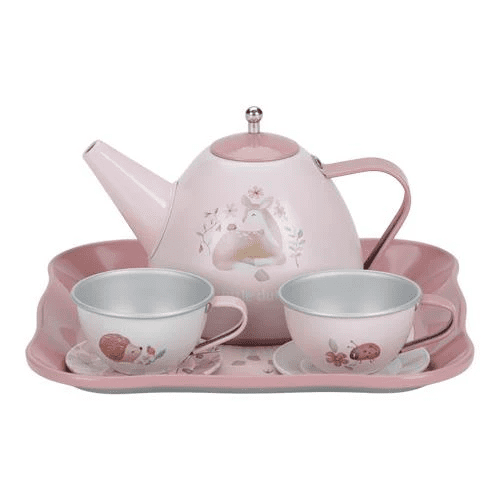 Met dit theeservies creëer je jouw eigen sprookjeswereld. Organiseer een theekransje met je poppen of knuffels, of nodig vriendjes uit voor een feestelijk samenzijn. Speel thuis, op school of in de tuin en laat je fantasie de vrije loop. Het compacte formaat maakt het ook ideaal om mee te nemen naar opa en oma of op reis.