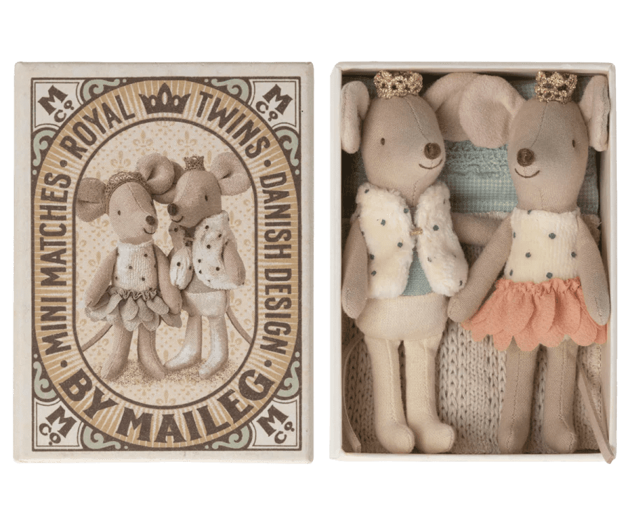 Maileg – Royal Twins, kleine zus en broer in Luciferdoos