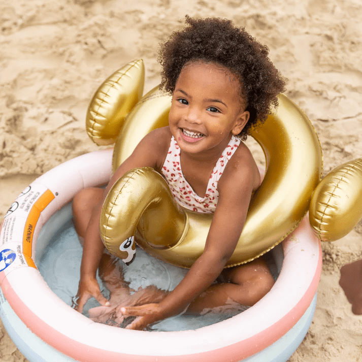 Kinderen kunnen met deze zwemband fantasierijke spelletjes bedenken, zoals zwaanrijden in het zwembad of waterpret in de tuin. Daarnaast is hij ook perfect voor zomerse dagen op het strand of in het meer. Door het opvallende gouden design voelen kleine zwemmers zich als echte waterprinsen of -prinsessen. De zwemband is licht en makkelijk mee te nemen, zodat het waterplezier altijd dichtbij is, thuis, op school of buiten.